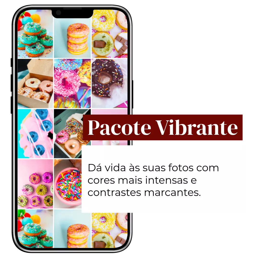 Cada preset foi pensado para realçar cores, texturas e detalhes — deixando suas fotos com um visual profissional e muito mais atraente.