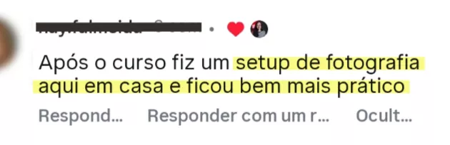 Receba orientações para melhorar suas fotos e evoluir com segurança, aplicando os ensinamentos do curso na prática.
