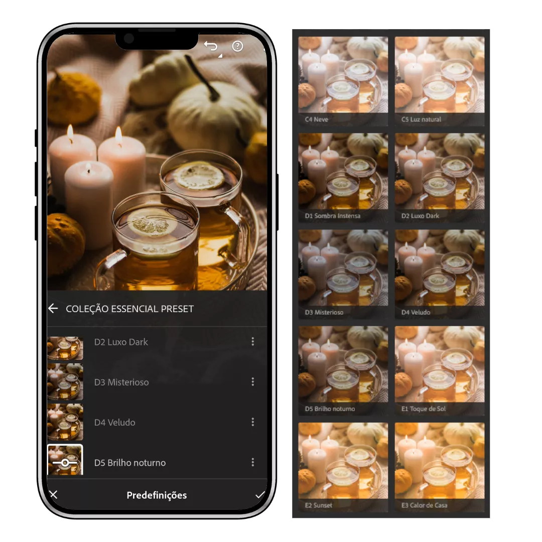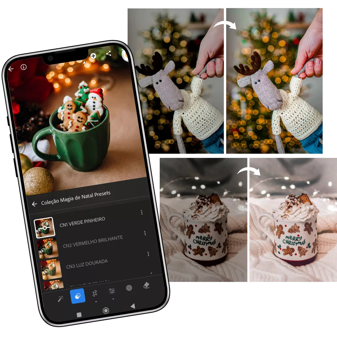 A Coleção Magia de Natal traz 15 presets exclusivos criados para dar às suas fotos o brilho, as cores e a atmosfera encantadora do fim de ano.