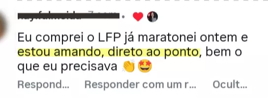 O LFP é 100% online e você pode assistir às aulas na plataforma Hotmart, pelo celular ou computador, sempre que quiser, dentro do tempo de acesso (2 anos).