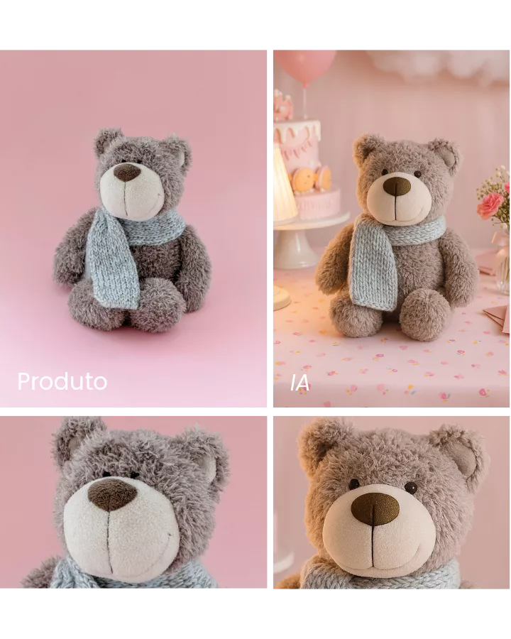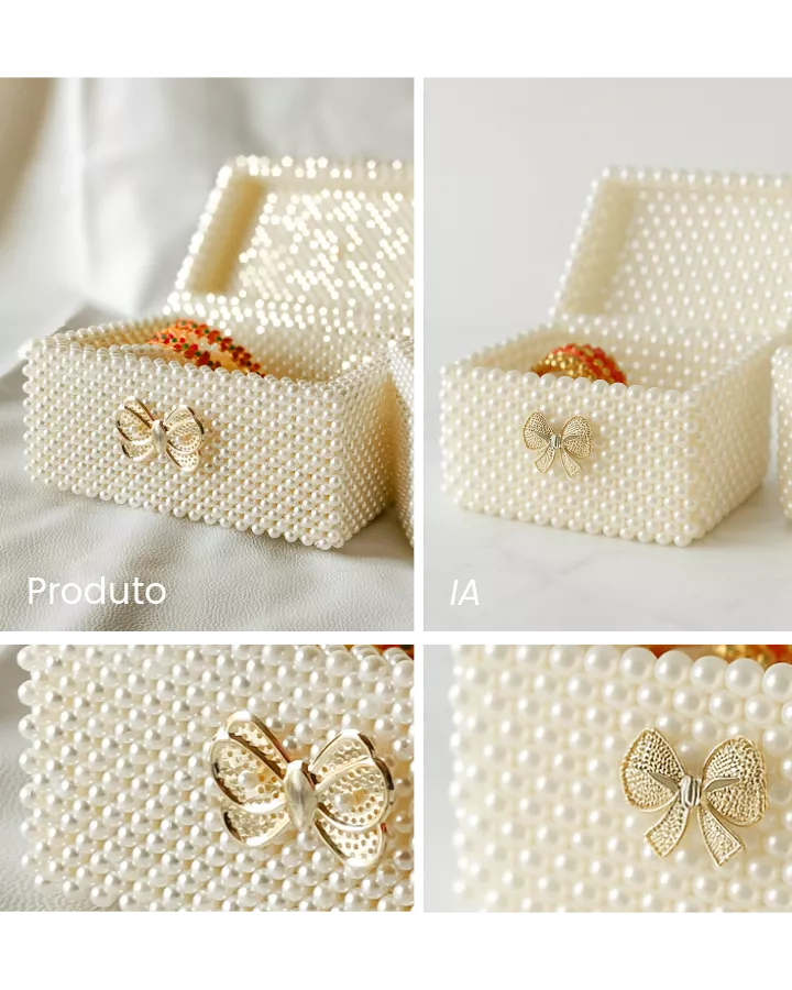 Vamos olhar com calma? Compare a foto do produto com a imagem gerada por IA.